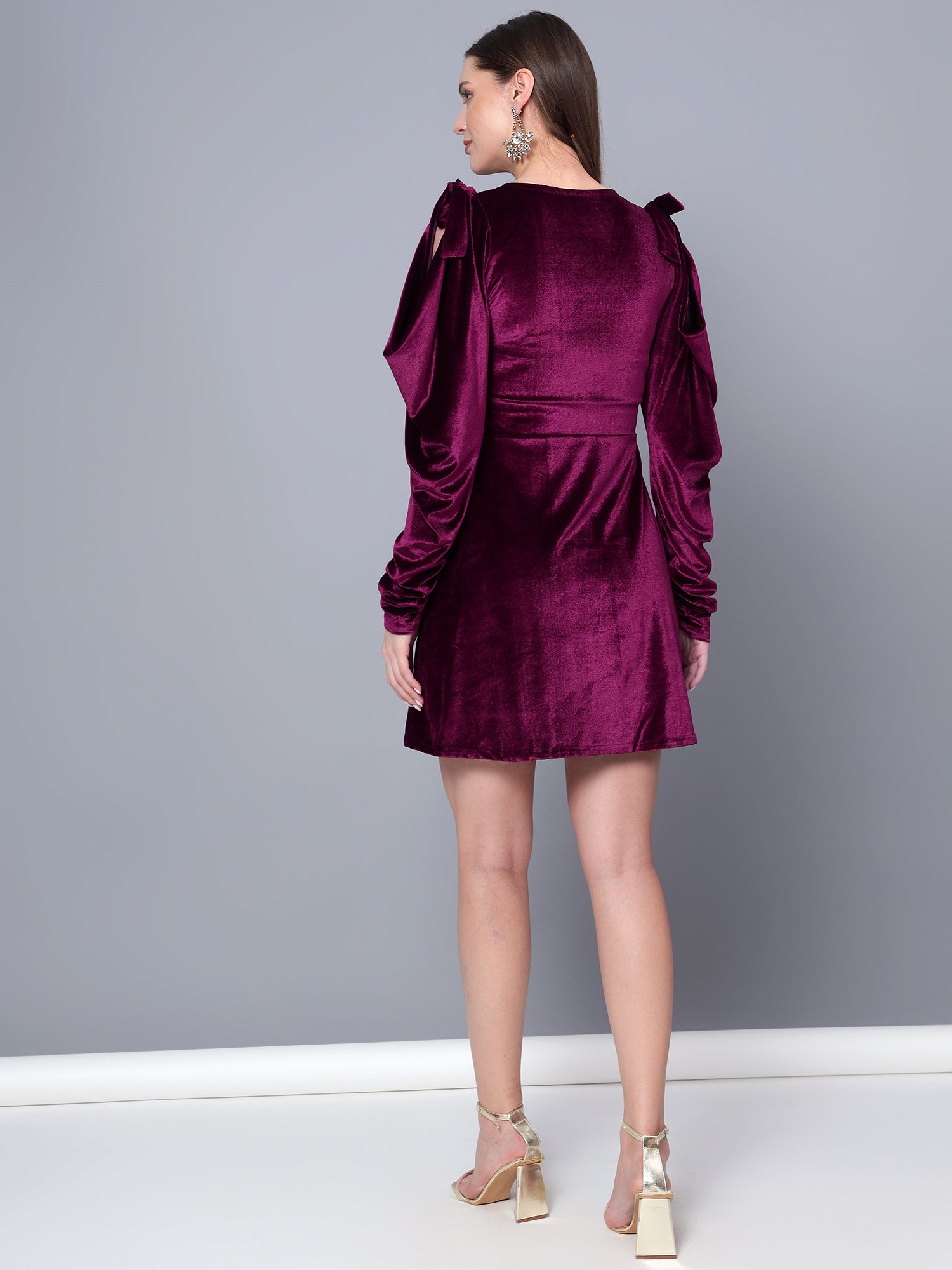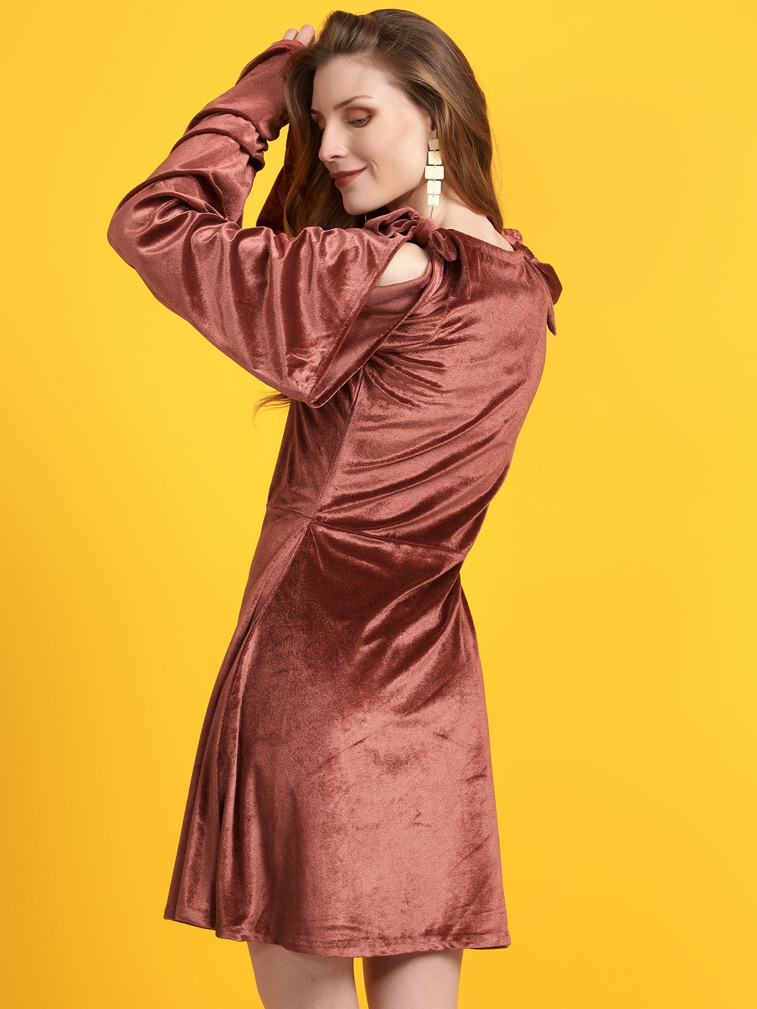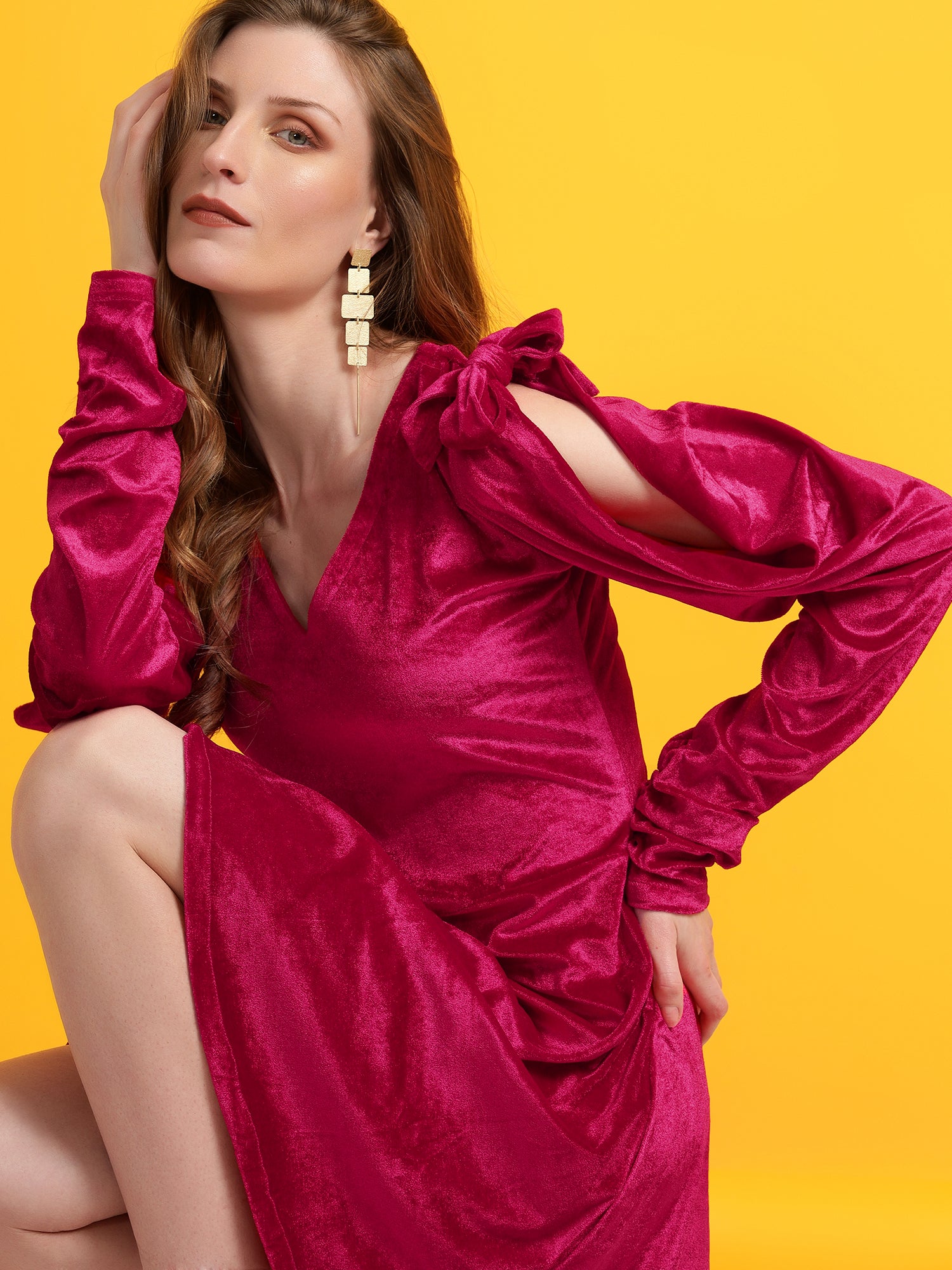 Golden Kite Women solid A-line , cowl sleeve velvet dress ,Be party-ready round the clock in this gorgeous dress. Its V- neck and long cowl sleeves accentuate your look and will lend you a graceful silhouette.Off-white tone . Classic solid pattern