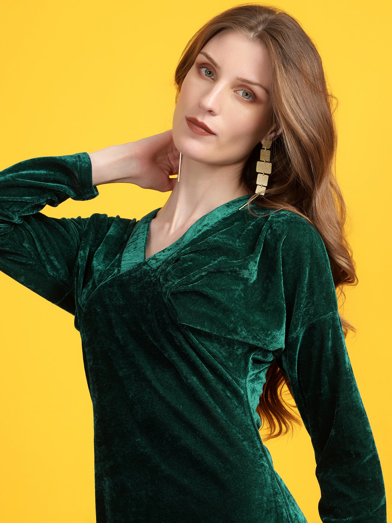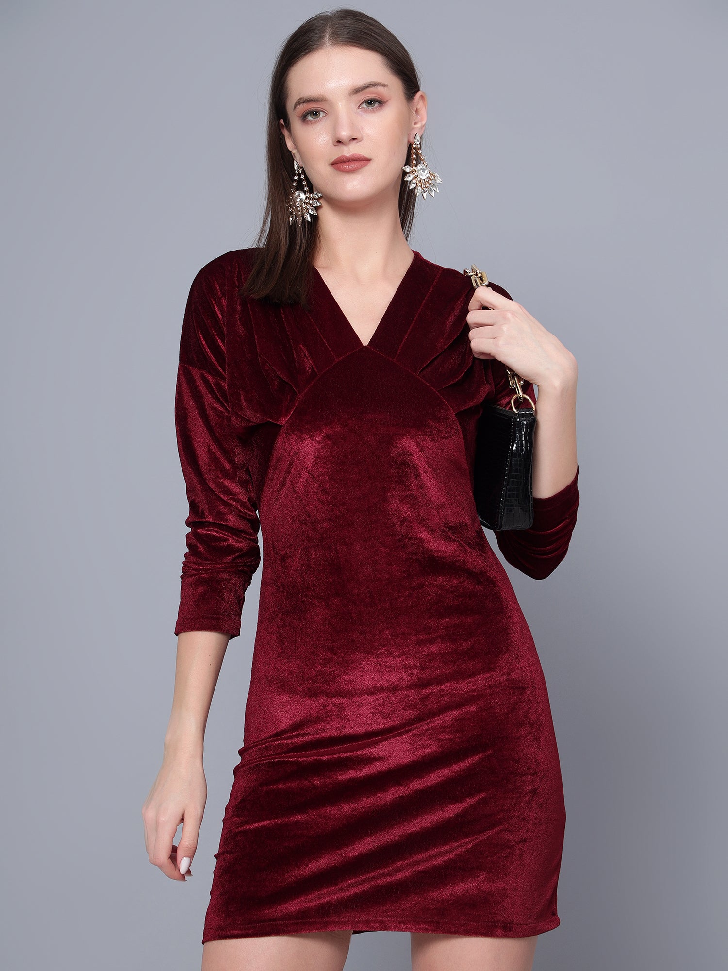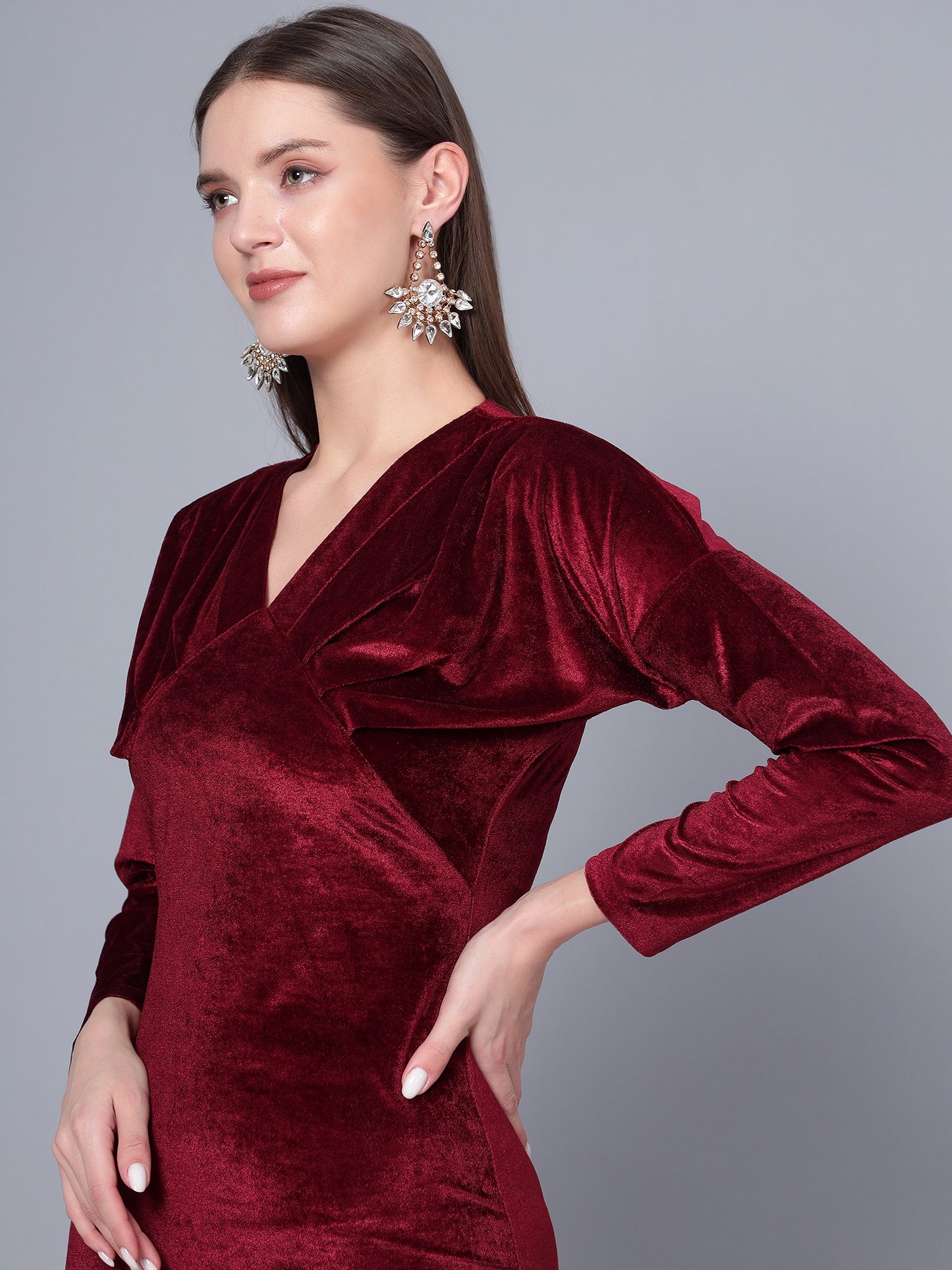Golden Kite Fuchsia Solid Velvet Bodycon Midi Dress