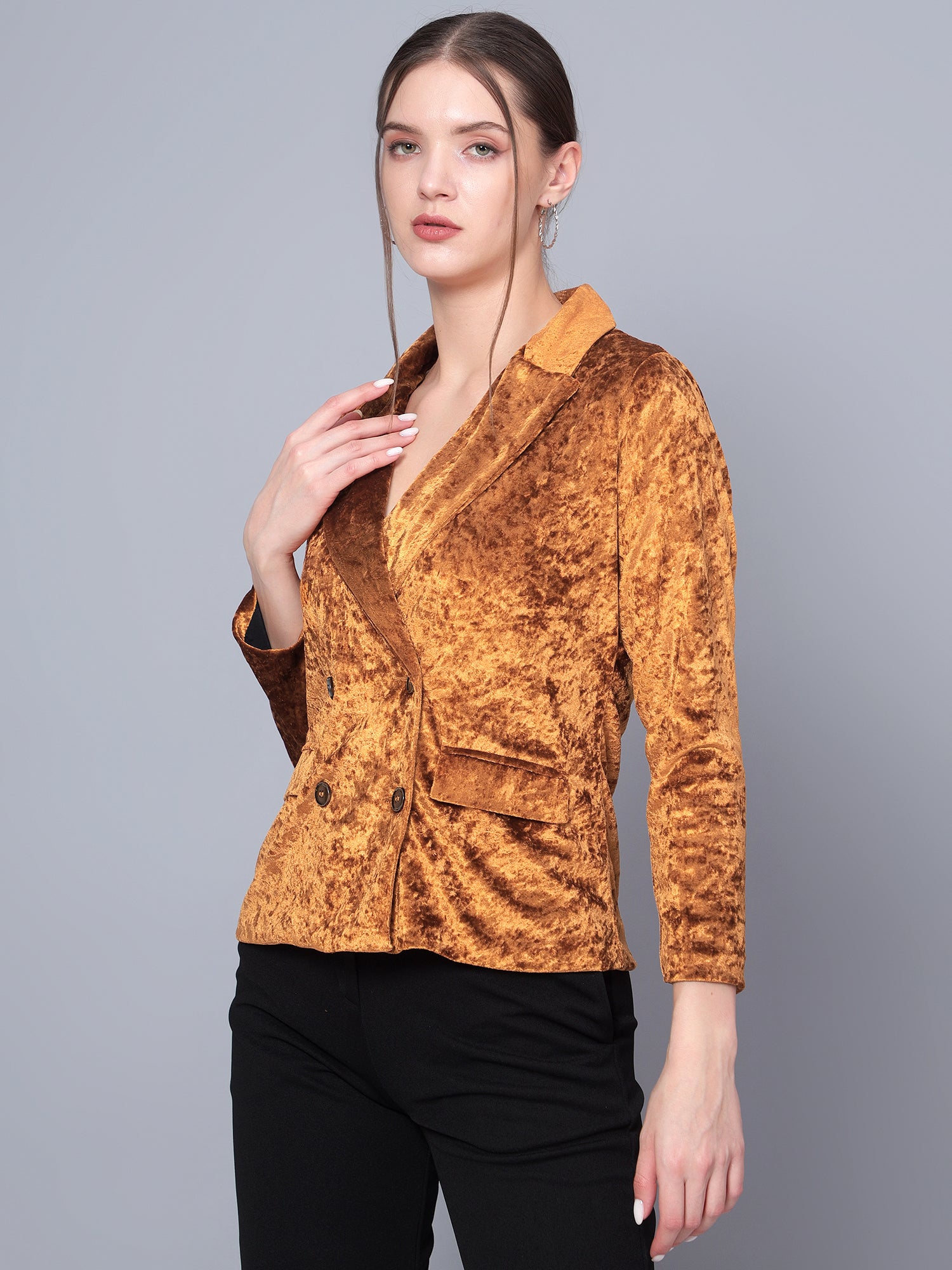 Crush Velvet ,Polyester, Hand wash, This chic ensemble combines a trendy Double Breasted Blazer for a stunning and effortless look. Whether you're headed to a business meeting or a special event, this versatile set will elevate your fashion game. With its impeccable tailoring and comfortable fit in stretchable fabric , you'll exude confidence and elegance wherever you go.
