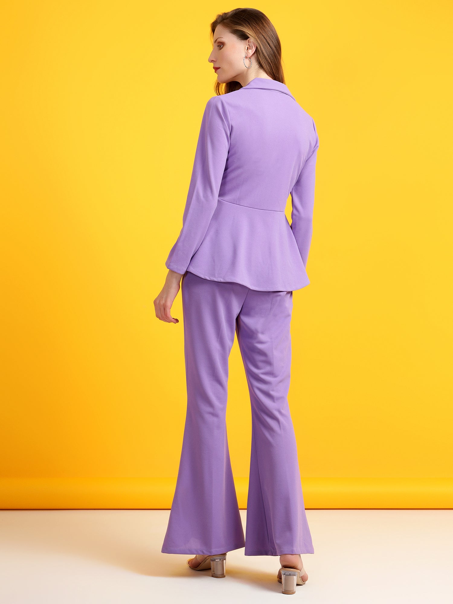 Get ready to slay in style with our Golden Kite Women's Coord Set! Look effortlessly stylish by donning this set. The beautiful V-neck and long sleeves will complement your overall look. Solid Regular Knotch Collar , A-line flared ,Front Button Closure ,Long Sleeve, Solid High-rise regular-fit trousers, Flared bottom , slip on closure , and two Side pockets