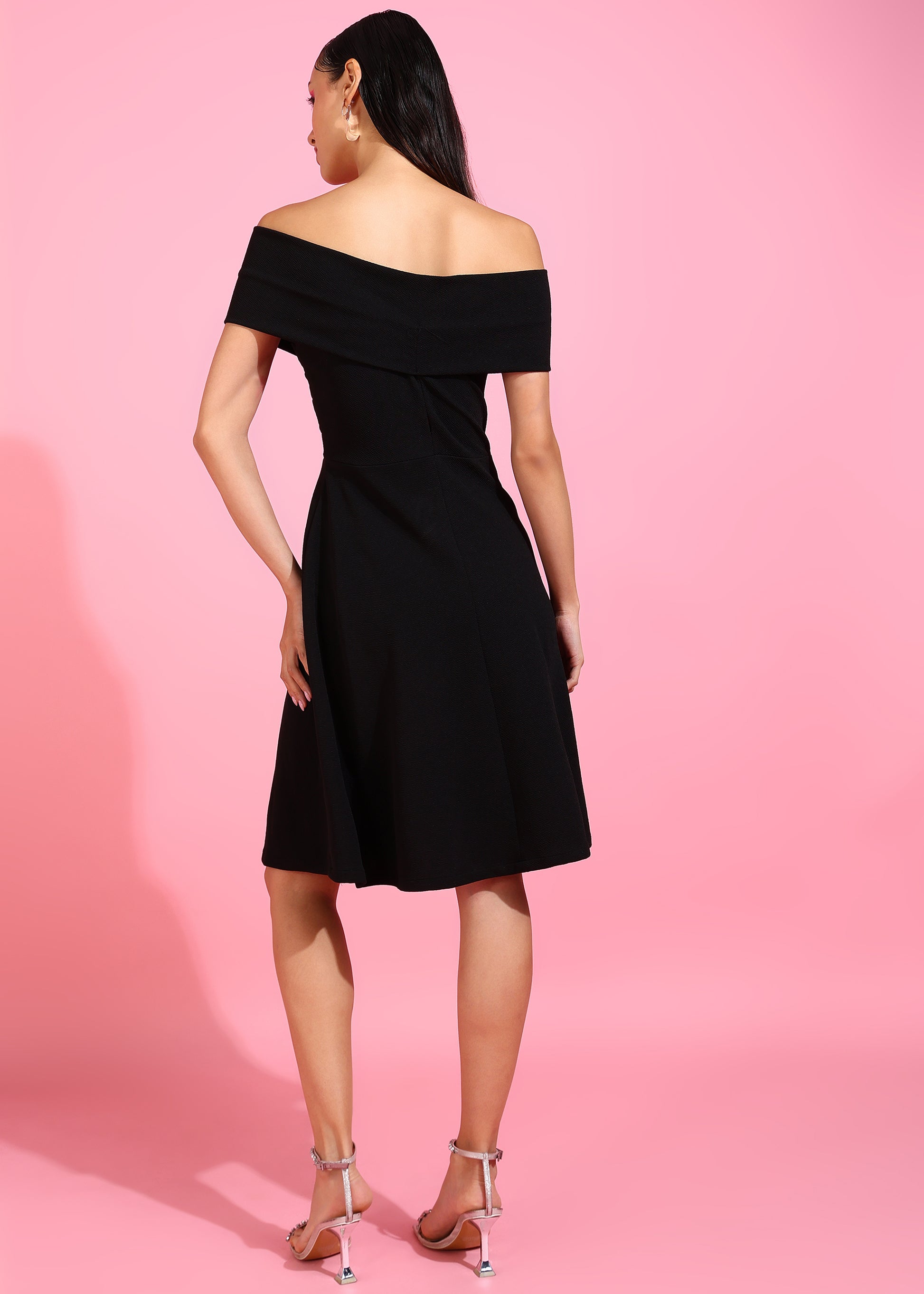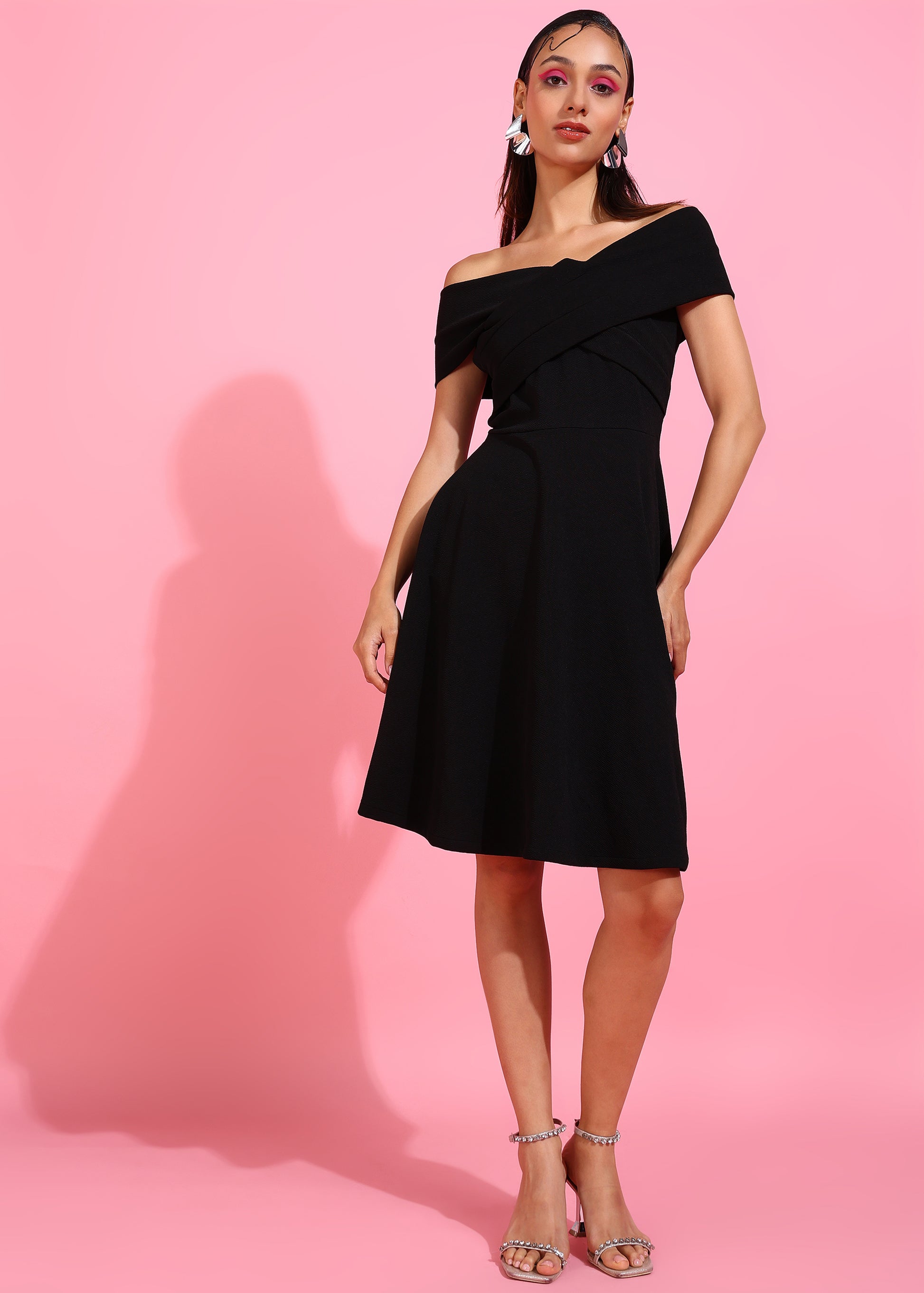 Golden Kite Women's Stretchable Polyester Off Shoulder Neck Wrap Midi Dress