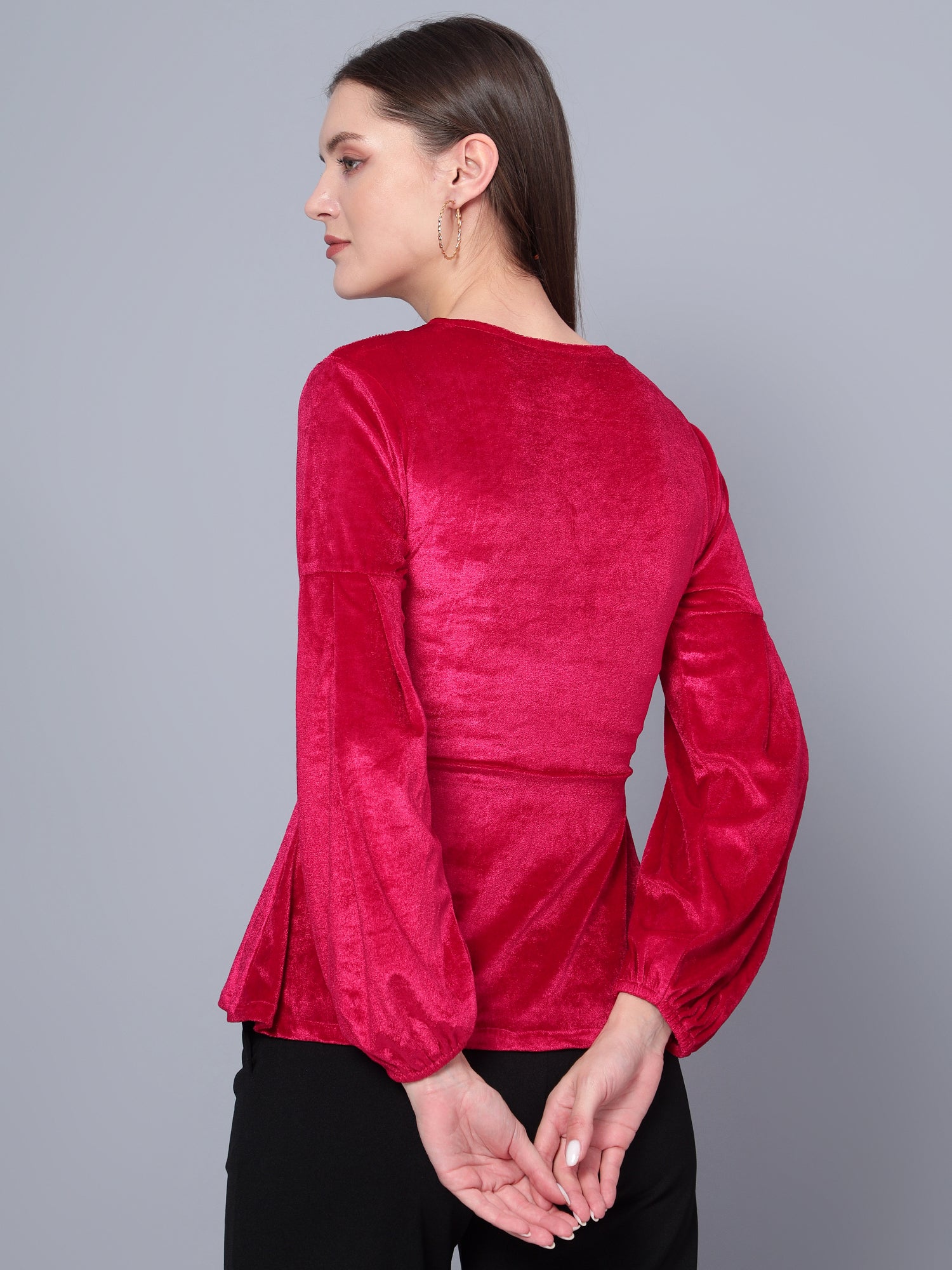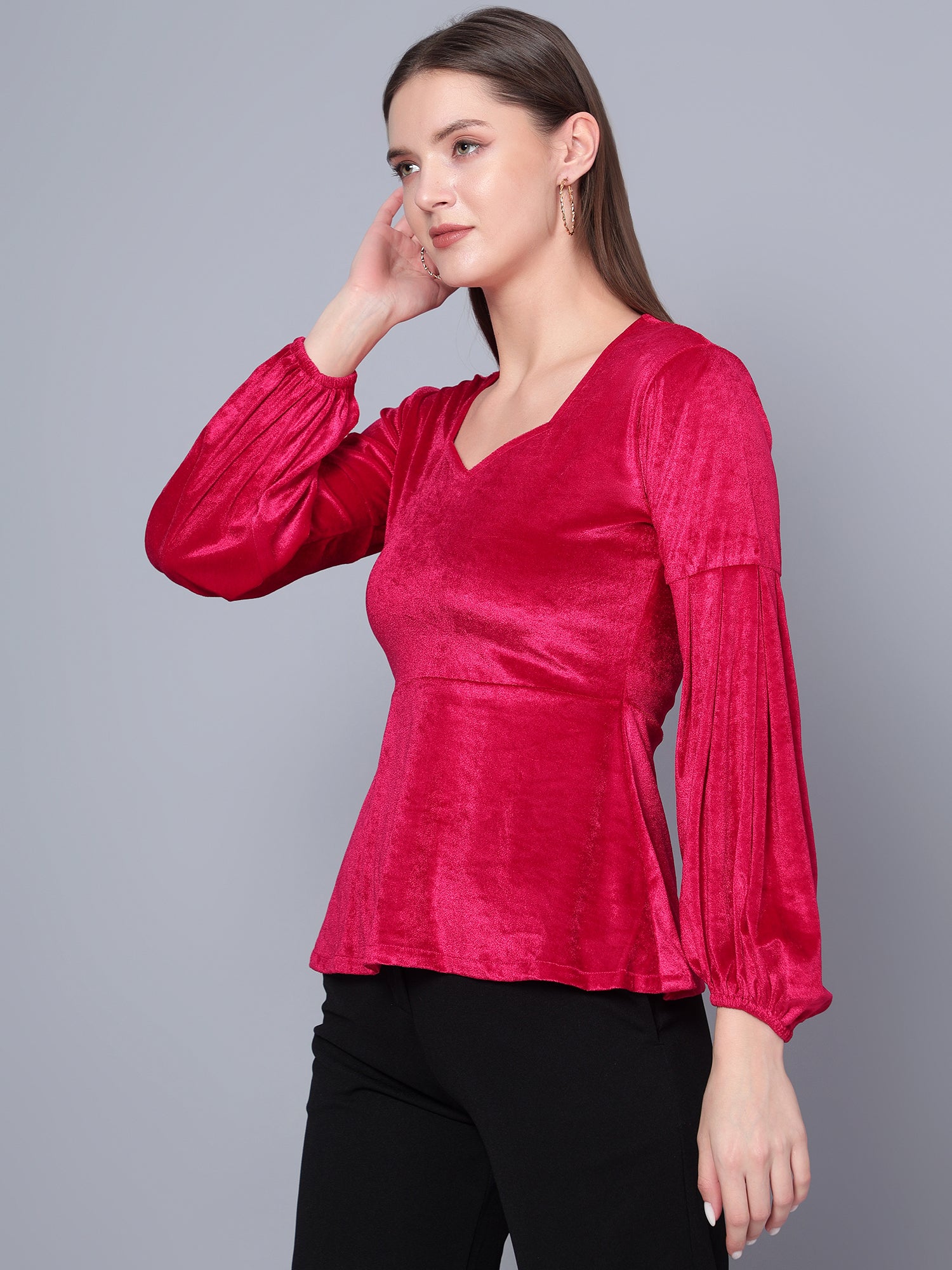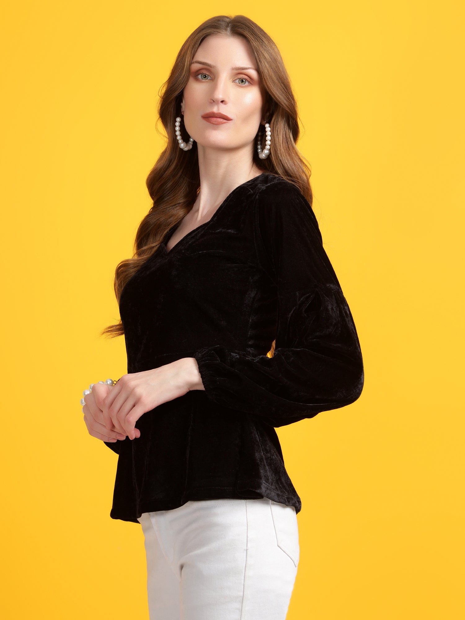 Golden Kite Black Women Solid Sweetheart Neck Bishop Sleeves Velvet Top