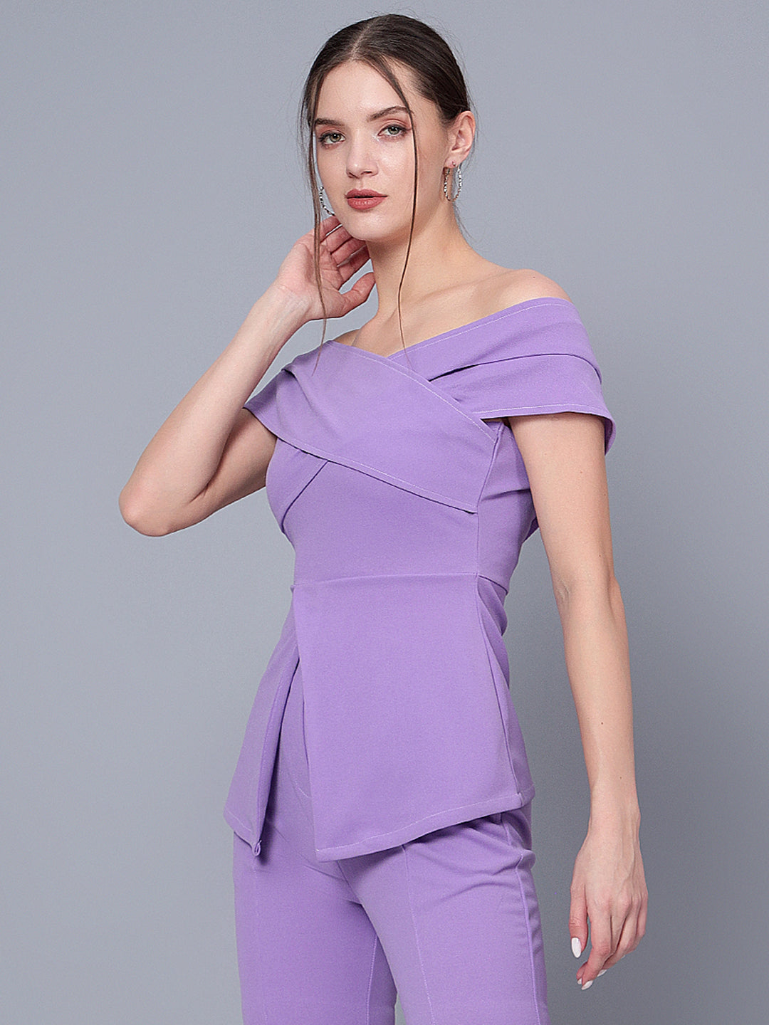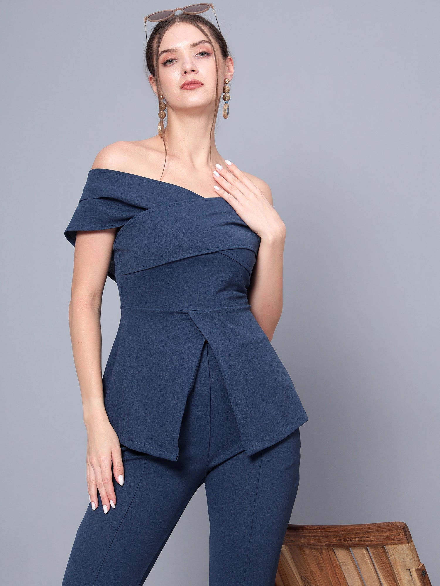 Get ready to slay in style with our Golden Kite Women's Coord Set! Look effortlessly stylish by donning this set. The beautiful Off Shoulder-neck and snug Criss Cross will complement your overall look. Solid Regular Off shoulder top ,shoulder pleat design Stylish color Classic solid pattern Off-shoulder Polyester, machine wash