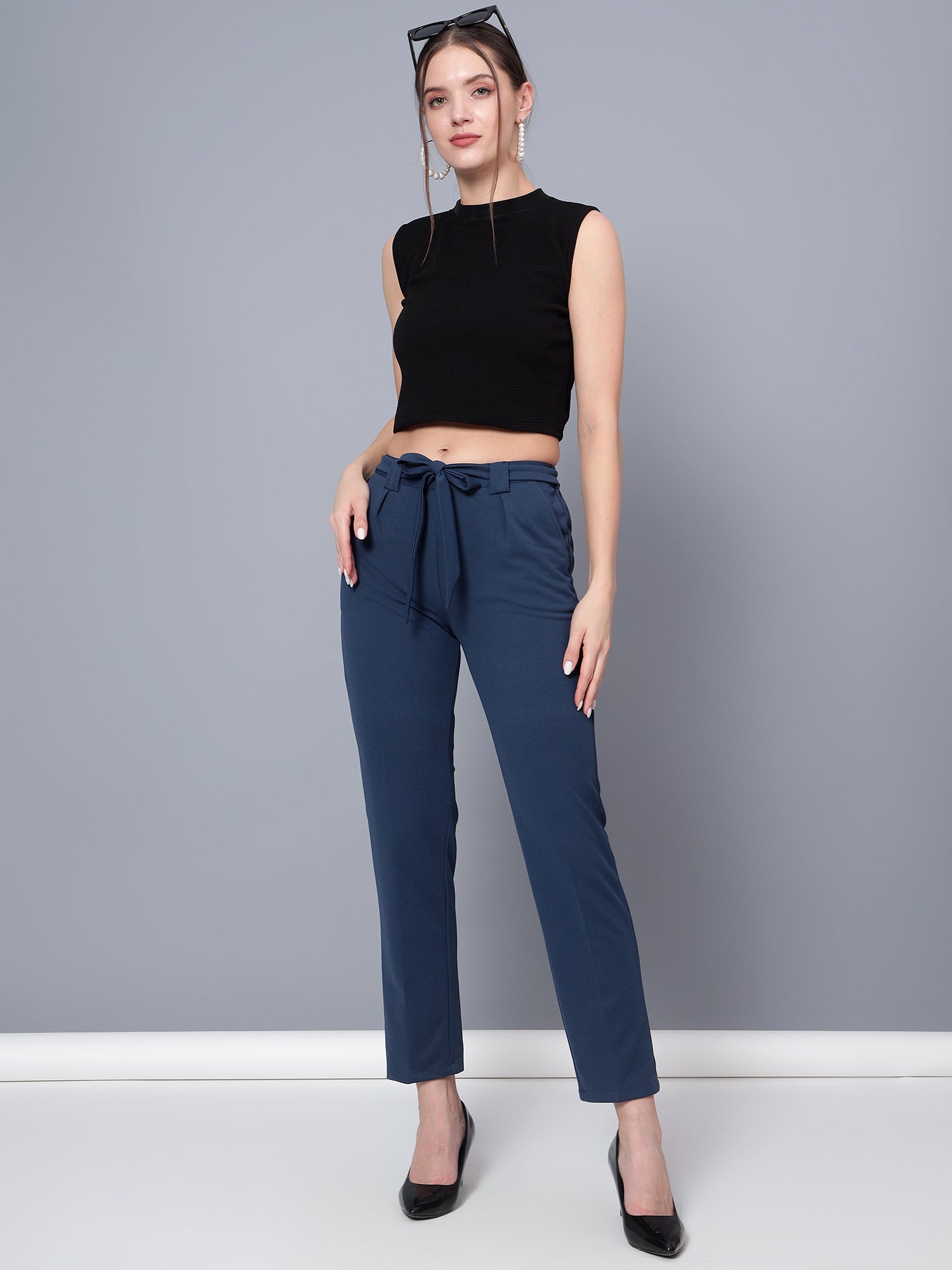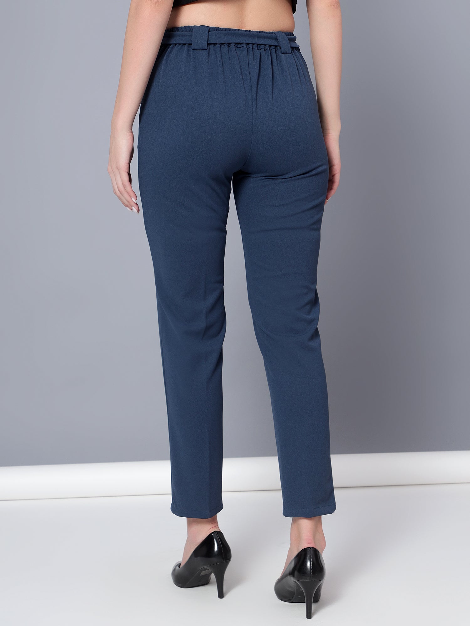 Golden Kite Women’s Solid Trousers are a sleek and stylish choice for casual wear. The deep color adds a touch of sophistication, making these trousers versatile for various occasions. They feature two side pockets for convenience and trouser loops for adding a belt, allowing you to personalize your look. These pants combine functionality with a polished design, perfect for enhancing your everyday outfits.